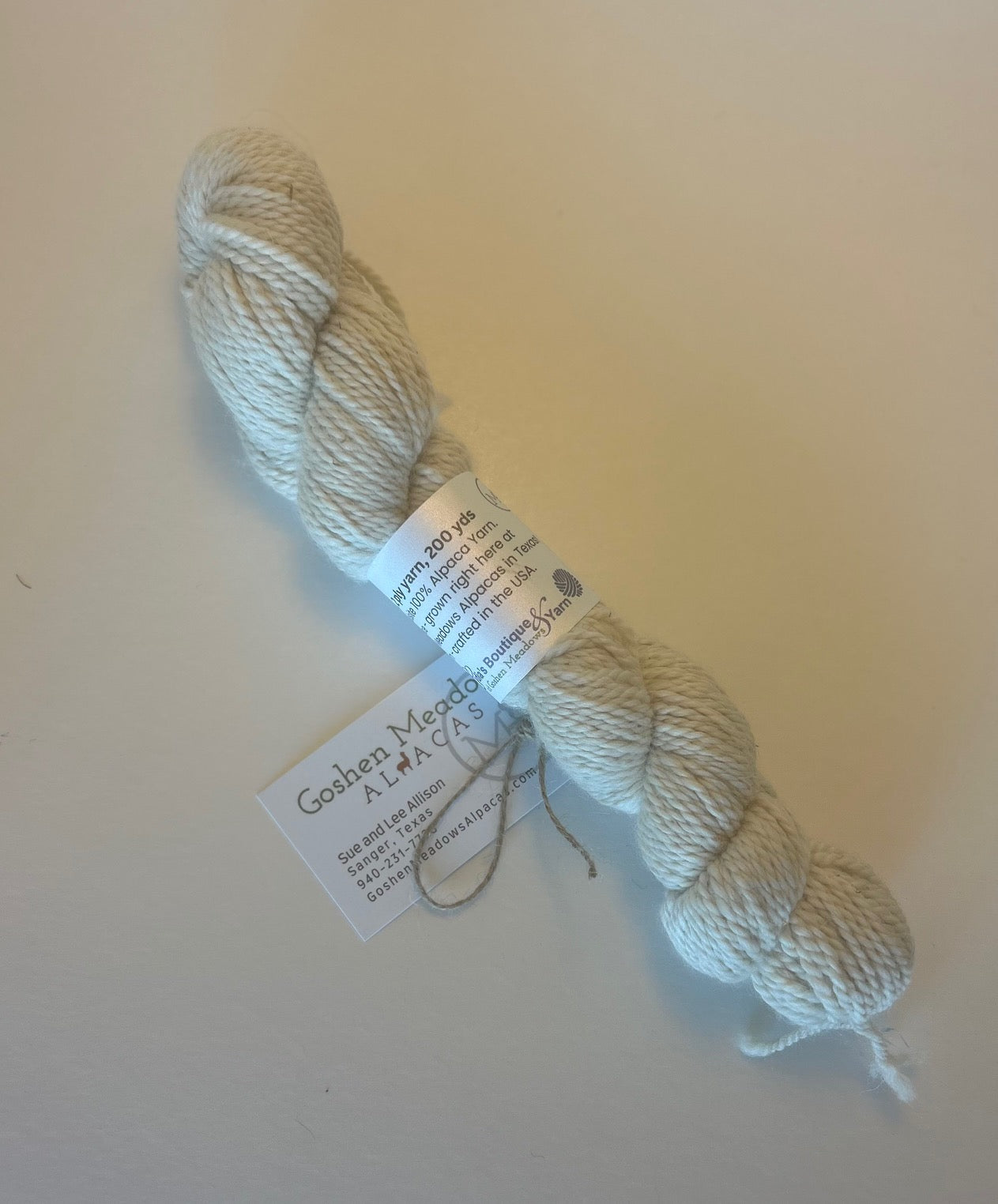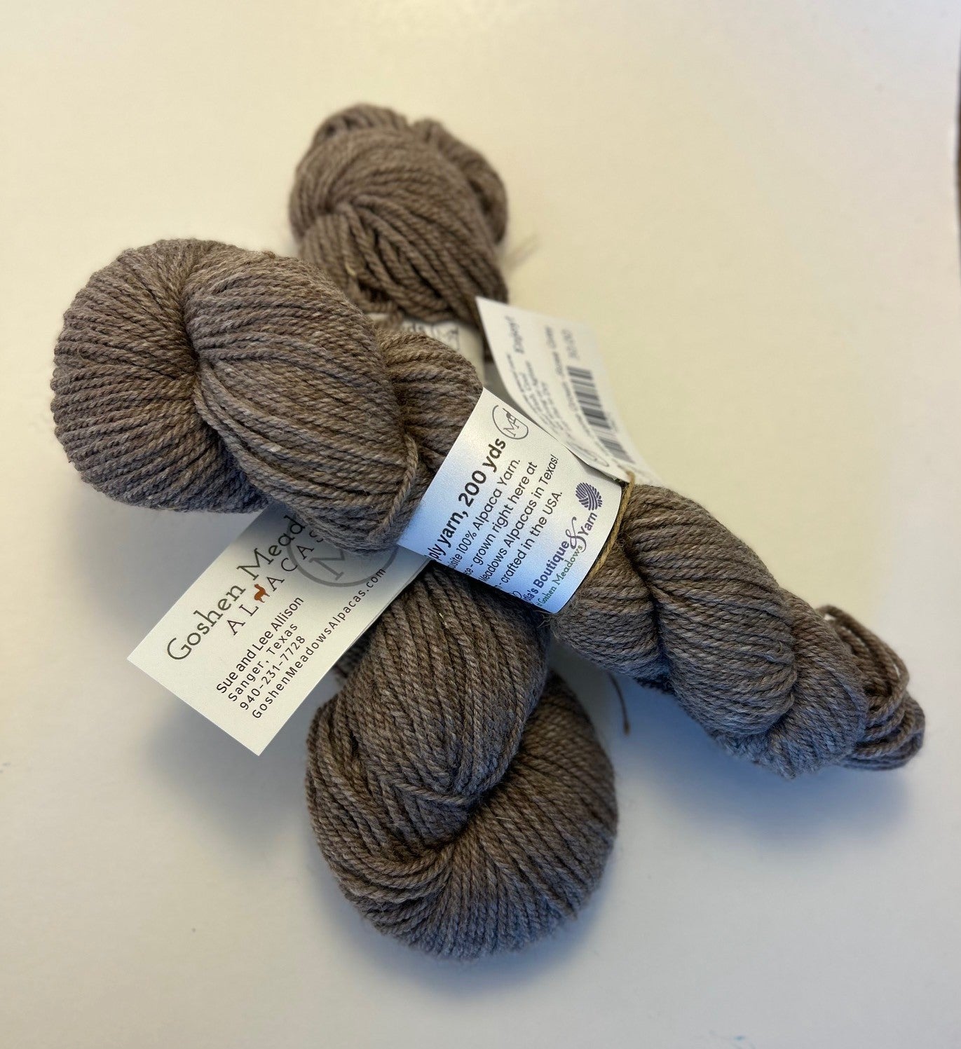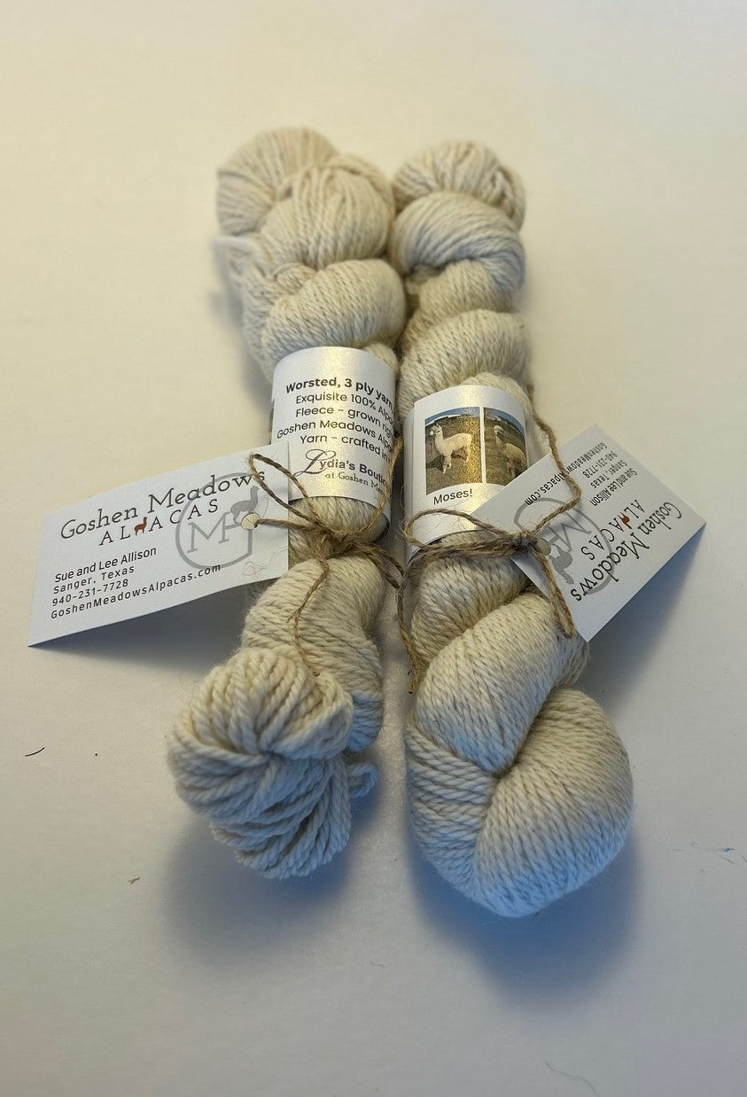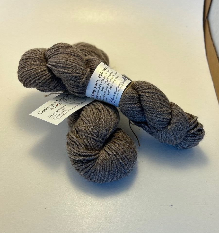 100% alpaca yarn made from the animals' fleeces right here at Goshen Meadows Alpacas!